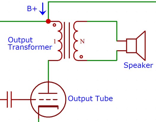 A series-feed transformer (or choke load) also lets us set a quiescent anode voltage (B+ minus the voltage drop across the transformer’s DCR). Unlike the lower tube in a cascode, a transformer loaded tube still swings voltage at its anode with AC signals. These signals are produced into an inductive impedance that presents no load at DC. That is to say the quiescent voltage is basically constant (for Class A operation) but the AC voltage and current are allowed to swing with the signal. As a result, we have control over operating voltage and still maintain (potentially) high impedance loading and voltage output.