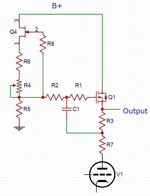 So what? If they are both just high impedance loads, why would I use a MOSFET gyrator with a bunch more parts instead of a MOSFET CCS? Well first of all, stop shouting. Second of all, there are times where setting the anode voltage rather than the current is beneficial. If we want to direct couple one stage to another, the anode voltage of the driving stage will set the grid voltage of the following stage. It’s very important in this situation that the voltage is stable and predictable over time.